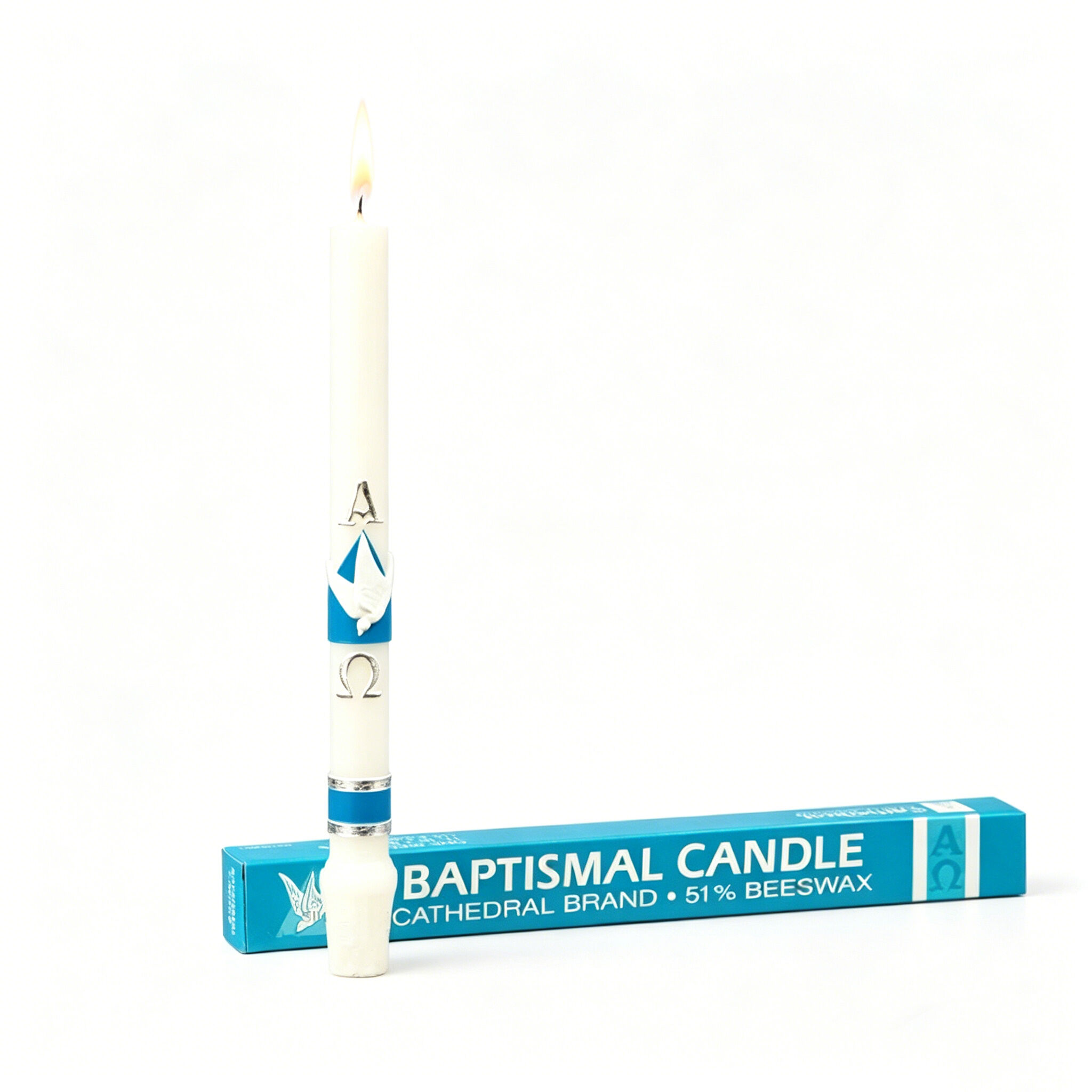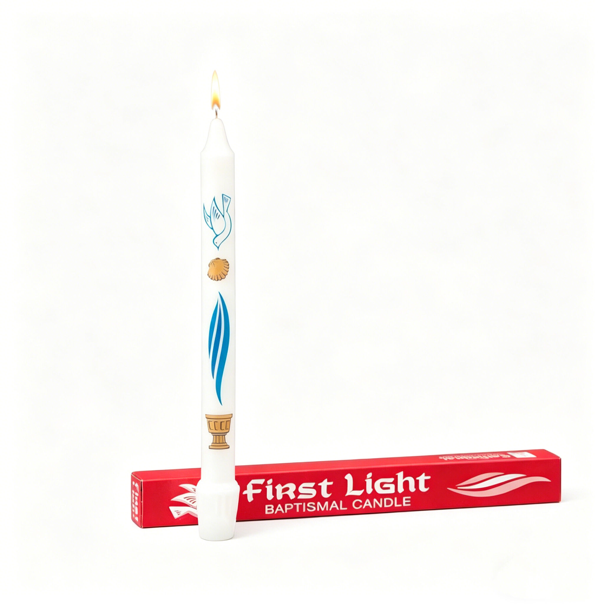 The dove, representing the Holy Spirit (often used for baptismal candles)