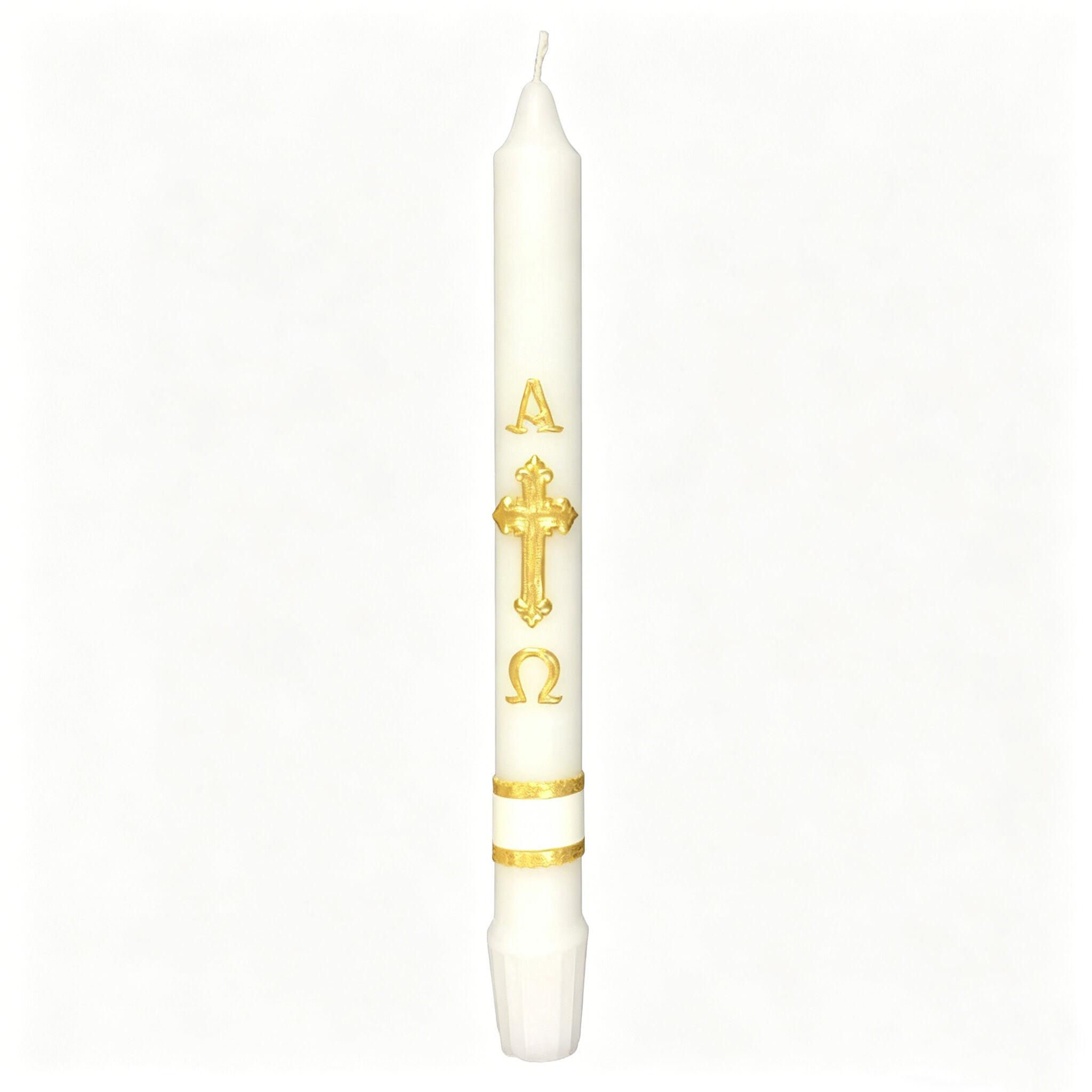 Our candles feature laser-engraved or hand-applied liturgical designs that remain visible and intact throughout the candle's burn life. Design elements include: