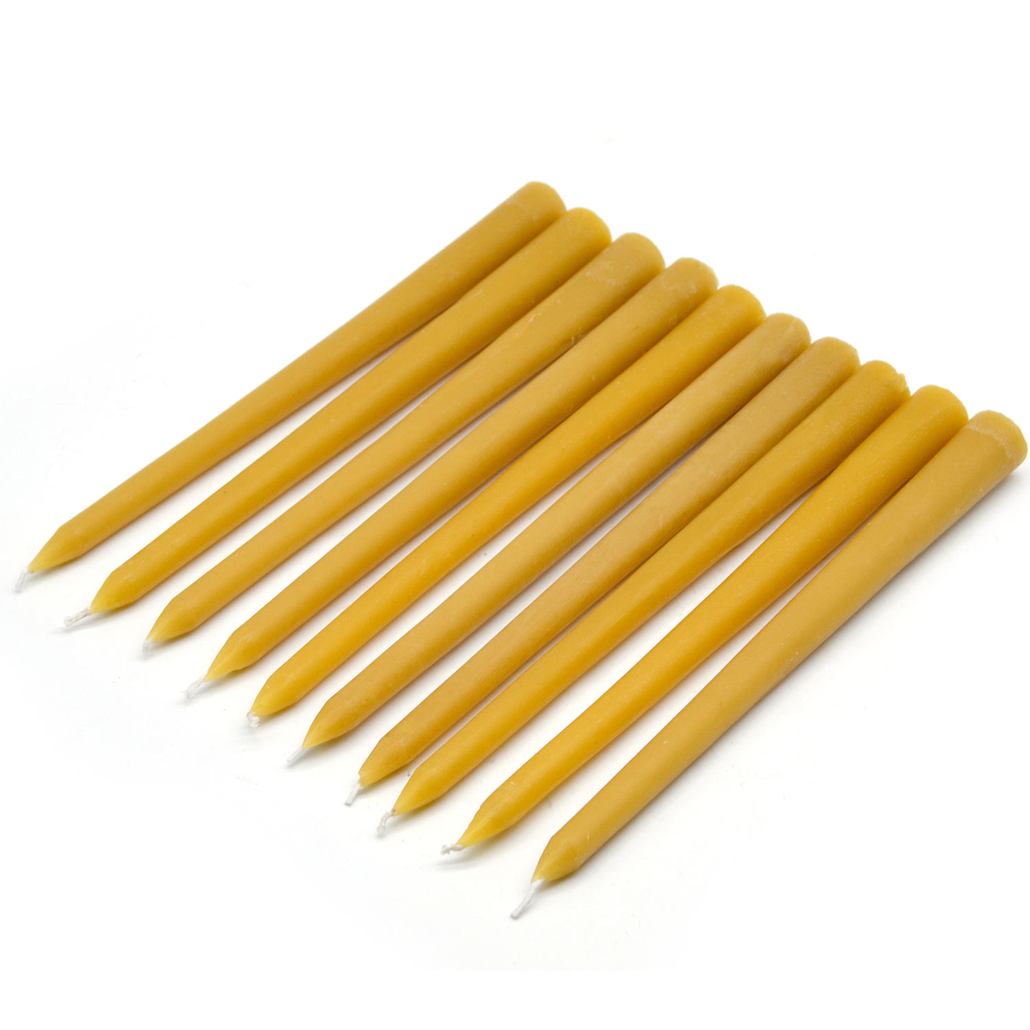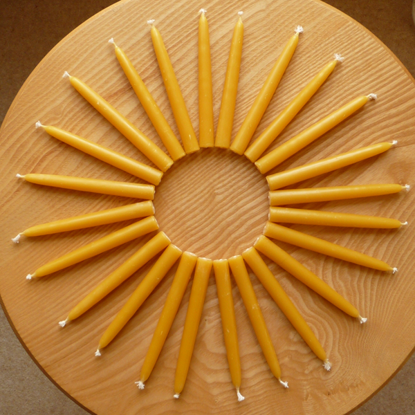 Наши конические свечи изготавливаются по традиционной технологии ручного окунания, при которой хлопковые фитили многократно погружаются в ванны с расплавленным пчелиным воском. Этот трудоемкий процесс создаёт многослойную структуру воска, в результате чего получается свеча с: